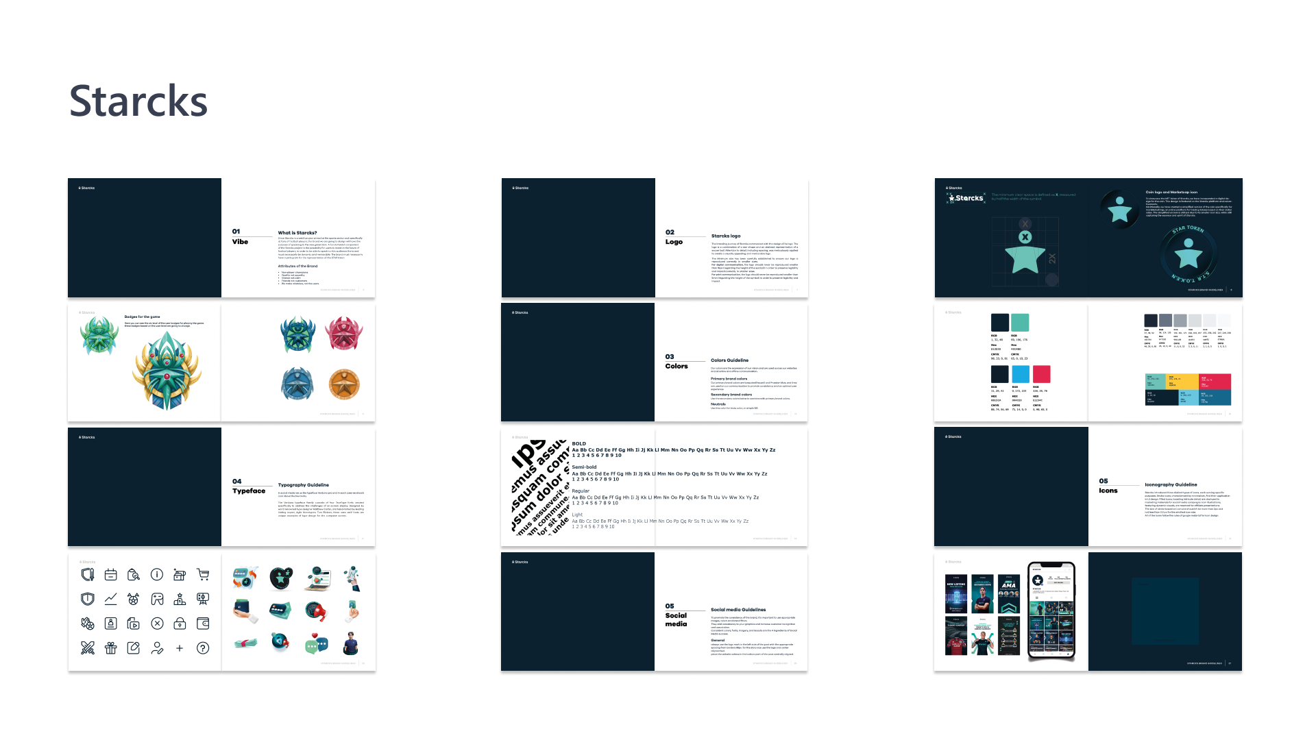 I showcase my work in creating the entire brand identity for projects like Starcks, Deriv, and StayWell.
